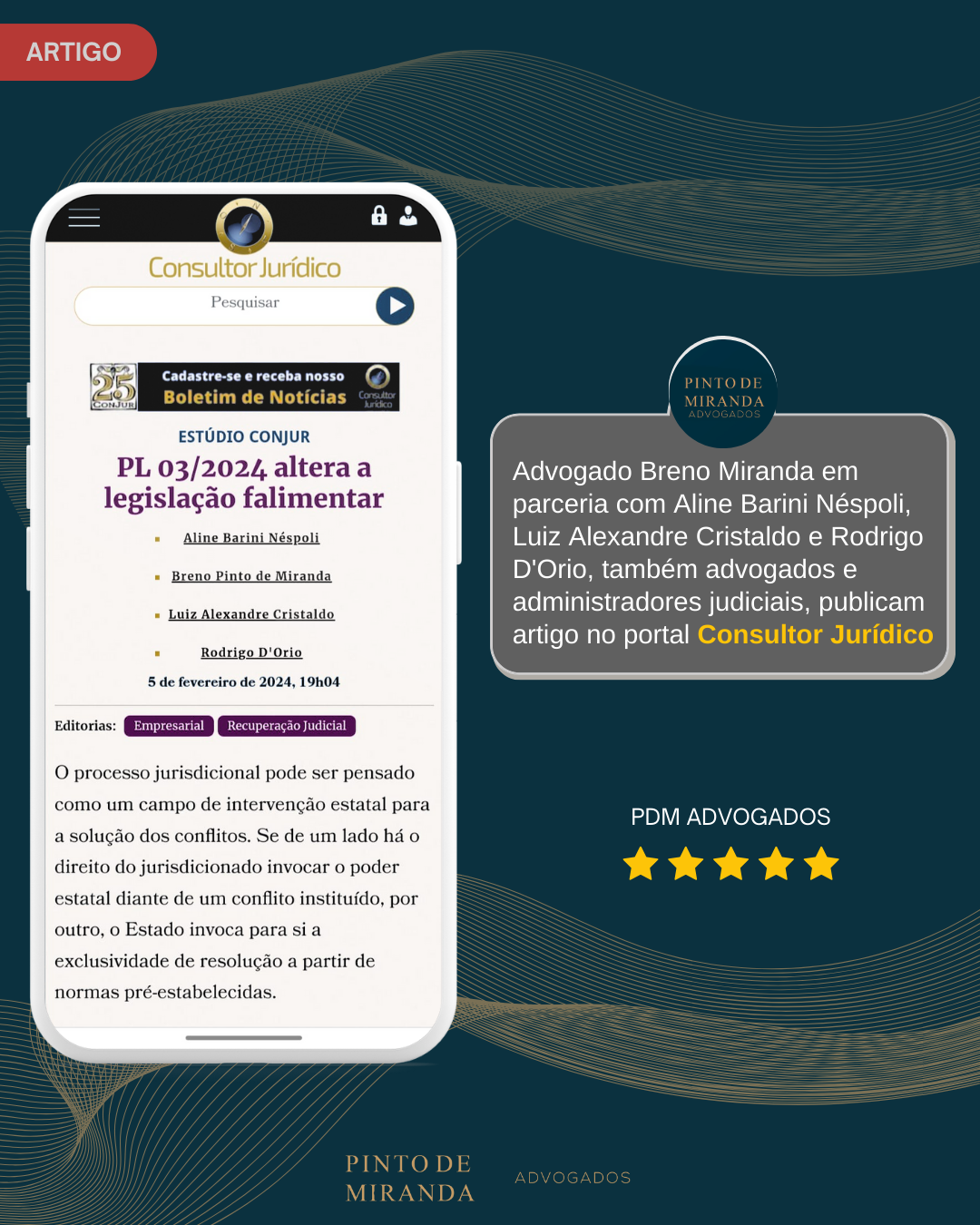 Advogado, sócio no PDM ADVOGADOS - Breno Miranda, fala sobre os 30 anos do Estatuto da Advocacia para o portal Ponto na Curva.